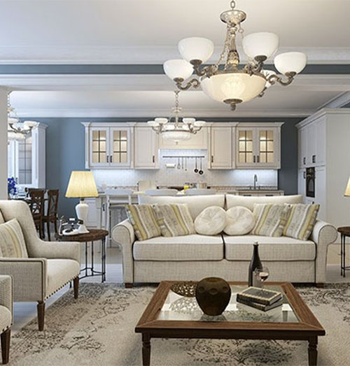 From concept to completion, our team delivers customized living room interiors that enhance your home’s beauty and provide a warm space for relaxation and gatherings.